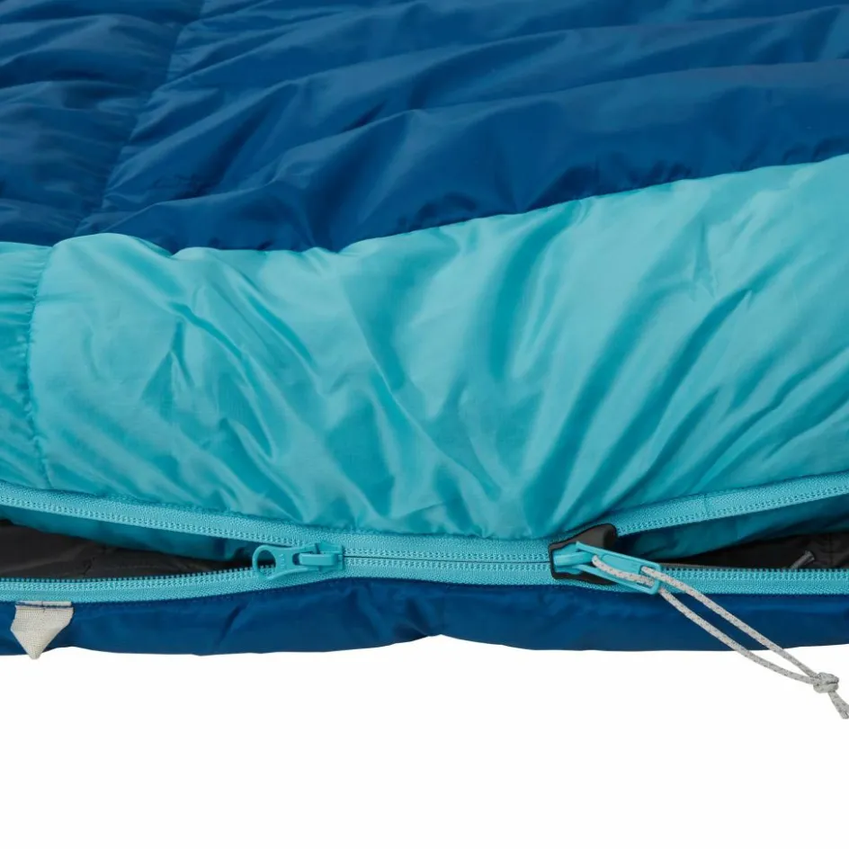 Übrigens: Ein besonders praktisches Feature ist der Fußbox-RV. Dank dieses und der Tatsache, dass sich auf beiden Seiten Rei0ßverschlüsse befinden, kannst du den Schlafsack auch als eine Art Poncho „tragen“. Du kannst dich im Schlafsack bewegen und sogar gehen, ohne dich ganz daraus schälen zu müssen.