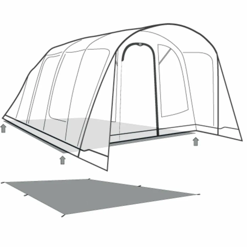 Die Bodenplane ist passend für das gesamte Zelt, einschließlich der Apsis, und schützt den Zeltboden vor Schmutz, Beschädigungen und kondensierender Bodenfeuchtigkeit.