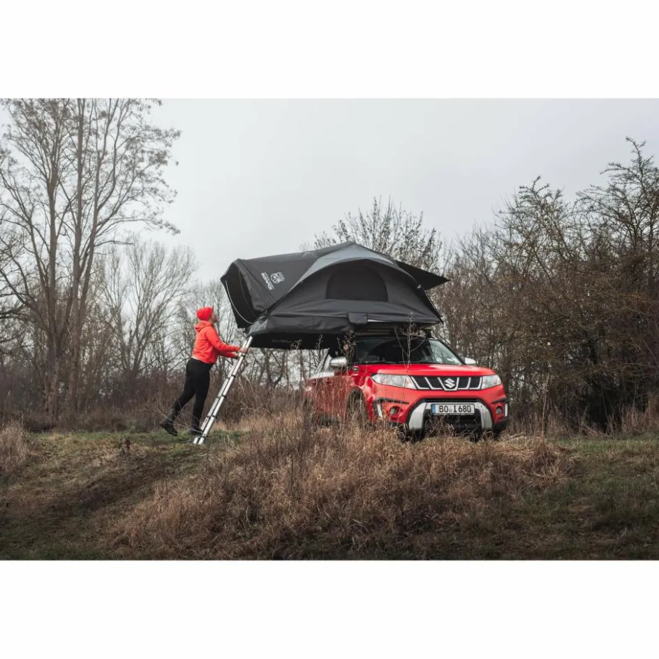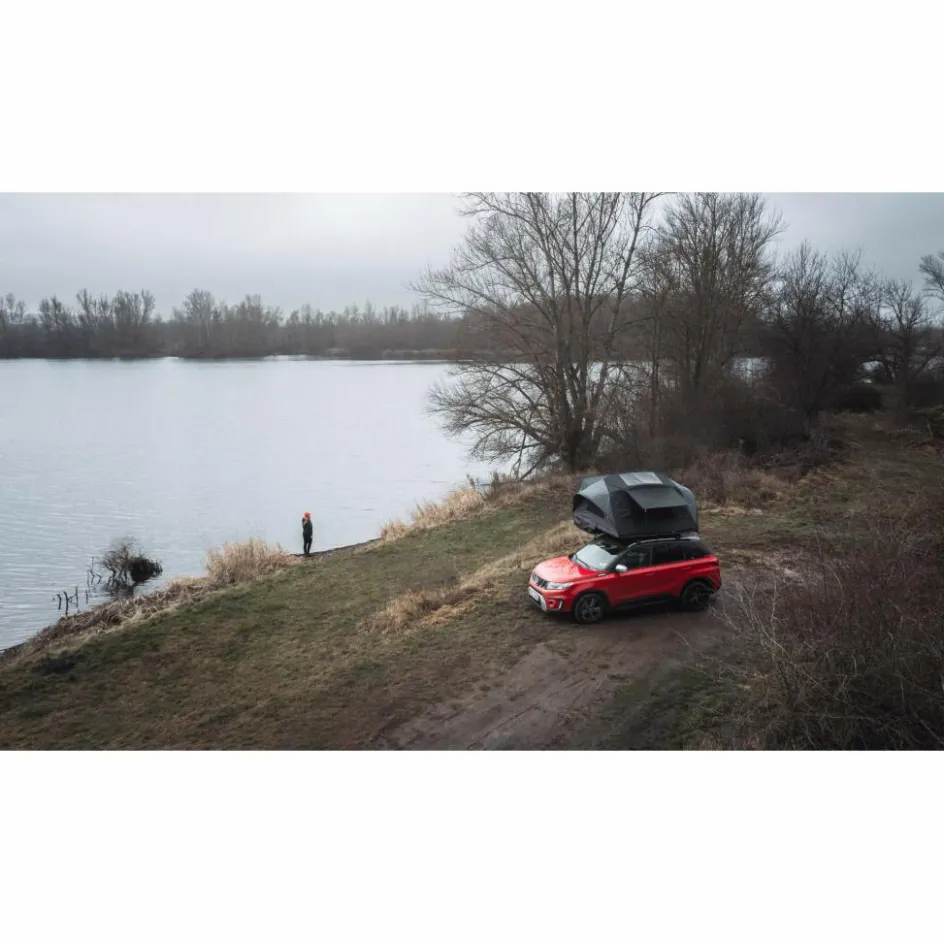 Egal ob als Familienzelt oder als Luxuswohnung für zwei, das X-Cover 2.0 ist ein Dachzelt der Extraklasse mit Wohlfühlgarantie unterwegs. Dabei ist es superleicht und passt sogar auf kleinere PKWs. Damit du dein gemütliches Camp schnell eingerichtet hast, wird das X-Cover durch einen patentierten Mechanismus einfach ausgeklappt und mit innenliegenden Scharnieren fixiert – so kommt es ganz ohne zusätzliches Gestänge oder Abspannleinen aus. Eingepackt ist so flach, dass du sogar noch weitere Ausrüstung wie Fahrräder oder kleine Kanus zusätzlich aufs Dach montieren kannst. Durch das Hartschalencase ist das X-Cover während der Fahrt stets gut vor äußeren Einflüssen geschützt.