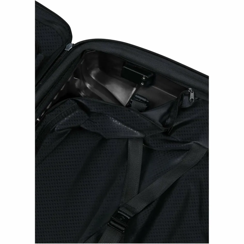 Auf vier leichtgängigen, leisen Rollen folgt dir der Upscape Spinner im Flughafen oder auf dem Weg zur Unterkunft. Das Innenfutter mit Organizerfächern darf in die Waschmaschine.