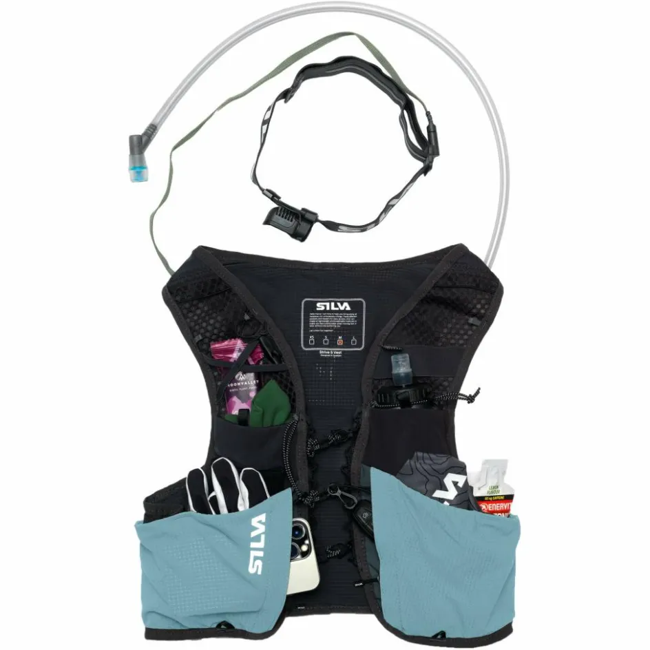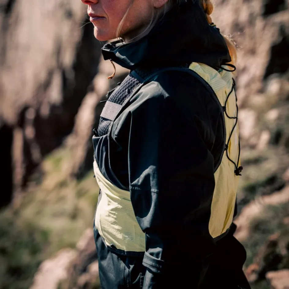 Die Strive 10 Vest bietet alles, was du bei deinen längsten Läufen brauchst. Die Weste verfügt über zwei Fronttaschen für Flaschen mit verstellbaren Riemen und ein hinteres Fach für Flüssigkeitsblase mit Öffnungen für Trinkhalme an den Schultern. Sie verfügt über drei Taschen mit Reißverschlüssen, zwei vorne, eine davon mit Schlüsselhaken, und eine hinten. Die großen Taschen auf der Vorderseite erleichtern den Zugriff auf Gels, Riegel oder Handschuhe. Befestige die Stirnlampe vorne, verstaue den Akku in der elastischen Tasche auf der Rückseite und führe das Kabel durch die Kabelauslässe an den Schultern. Die Laufweste verfügt außerdem über reflektierende Details, eine Signalpfeife für Notfälle und Riemen für Laufstöcke.