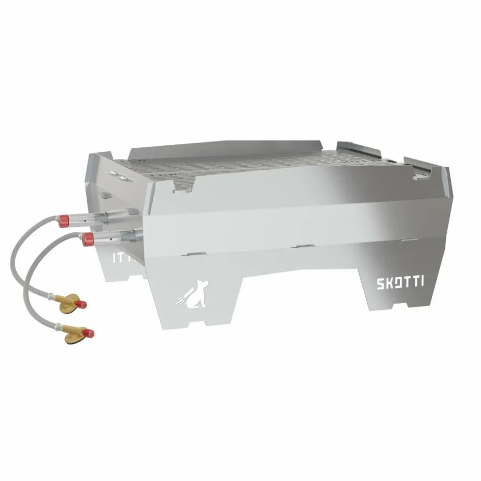 Der Grill Max besitzt eine doppelt so große Grillfläche wie der Skotti Original und kommt mit zwei Brennerrohren, die eine unterschiedlich starke Hitzezufuhr erlauben.