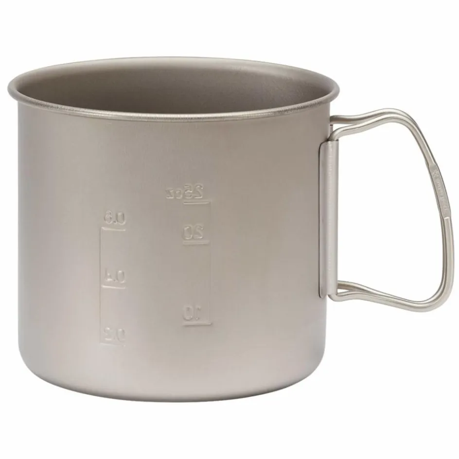 Kleiner Titantopf für Solo-Touren. Äußerst leicht und zur Optimierung des Packmaßes mit arretierenden Klappgriffen versehen. Eine eingeprägte Skala ermöglicht das genaue Abmessen von Flüssigkeiten.