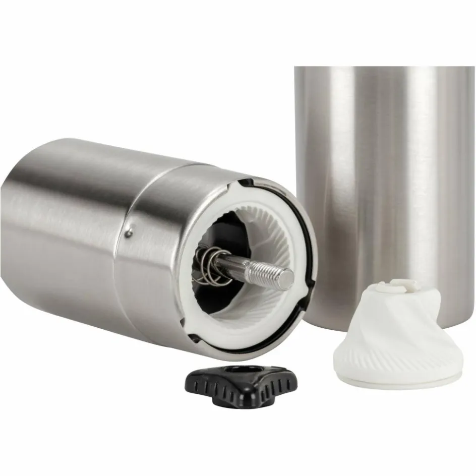 So kannst deine Bohnen grob oder fein mahlen, egal welche Zubereitungsart du bevorzugst. Die schlanke Form der Mühle liegt angenehm in der Hand und lässt sich gut im Campinggepäck transportieren. Zusätzlich ist der Griff einklappbar für eine noch kompaktere Form.