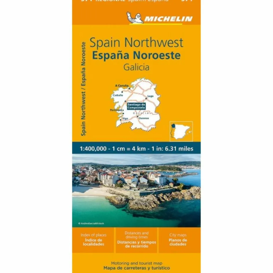 MICHELIN Straßen- und Tourismuskarte Galicien Galicien-Karte im Maßstab 1:400.000 Die Michelin Regionalkarte bietet viele nützliche Informationen: – Markierung besonders schöner Strecken – Ortsverzeichnis – Entfernungs- und Fahrzeitentabelle – Stadtpläne: Santiago de Compostela, A Courna, Lugo, Ourense, Pontevedra, Vigo