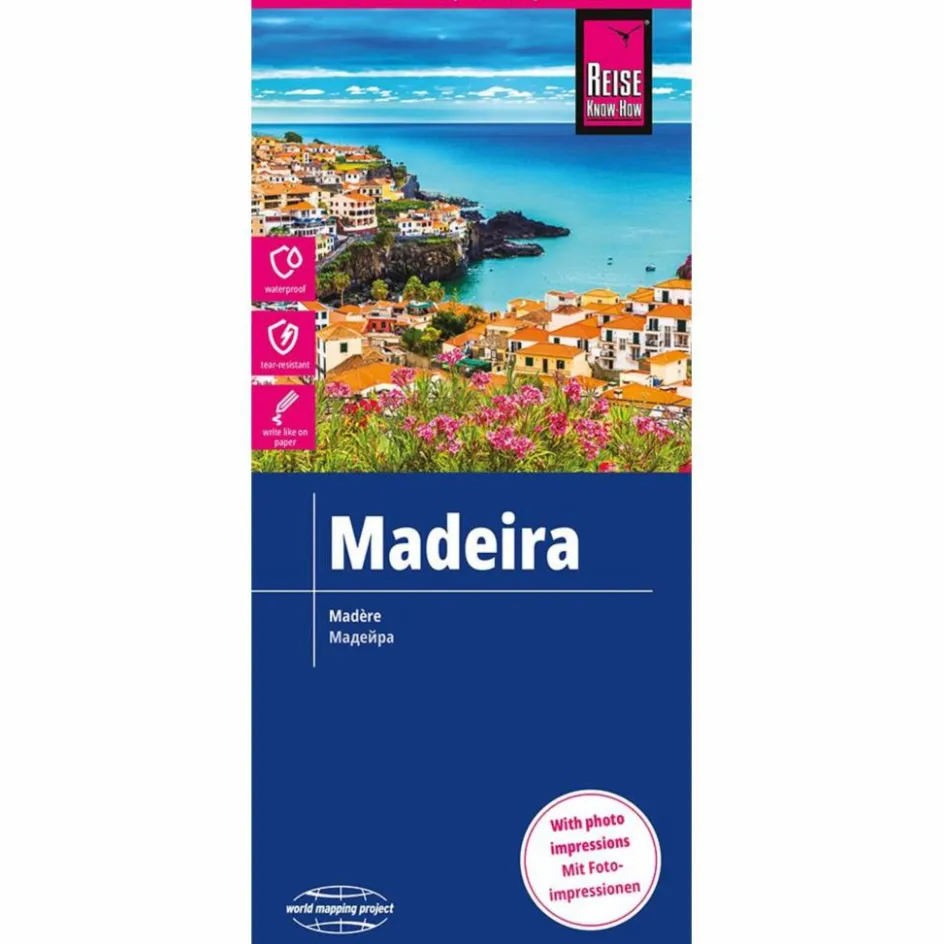Hochreißfeste und 100% wasserfeste Landkarte „Madeira“ aus der Serie world mapping project. Reise Know-How Landkarten zeichnen sich durch besonders stabiles Kunststoffpapier aus, das beschreibbar ist wie Papier, sogar mit Bleistift. Der Pappumschlag ist abnehmbar, so dass sich die Karte bequem in jede Tasche stecken lässt. Eine Schutzhülle ist nicht erforderlich. Die kartografische Darstellung konzentriert sich auf die wichtigsten Informationen für Reisende und ist besonders gut lesbar. Statt einer Schummerung werden farbige Höhenschichten verwendet.
