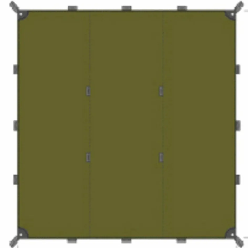Vier stabile Ösen an den Ecken zur Aufnahme von Tarpstangen und 20 Abspannschlaufen ermöglichen mit den mitgelieferten Abspannleinen unterschiedlichste Aufbau- und Einsatzmöglichkeiten. So ist das Tarp 1 zum Beispiel als Zeltersatz, als Wind- und Regenschutz, als Sonnensegel, als zentraler Treffpunkt im Zeltlager oder als Abdeckplane verwendbar.