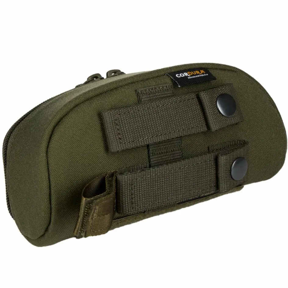 Das Hauptfach ist mit einem Zwei-Wege-RV ausgestattet. Auf der Rückseite des TT Eyewear Safe befinden sich MOLLE-Laschen, mit denen du das Etui am Gürtel oder Rucksack – idealerweise mit MOLLE-System – befestigst.