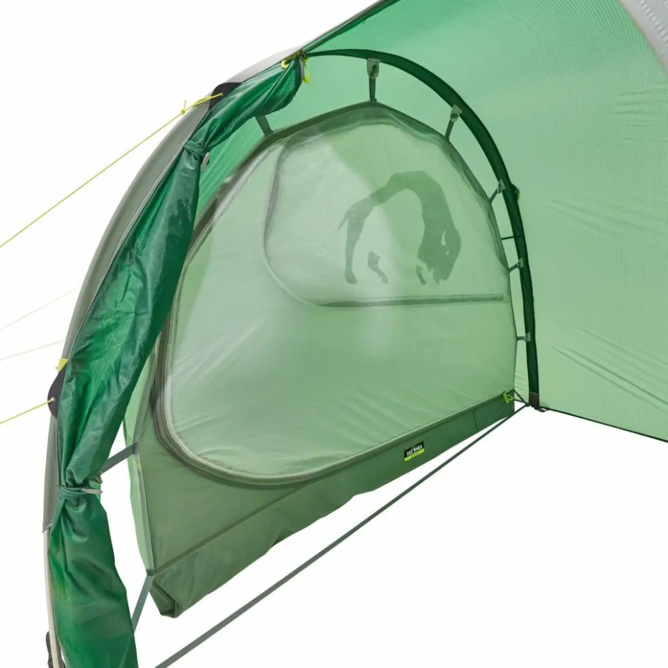 Zum Einsatz kommt ein leichtes, aber dennoch strapazierfähiges 30D Ripstop Nylon Außenmaterial. Die Silikonbeschichtung ist UV-beständig und dadurch langlebiger als PU-Beschichtungen. In der langen Apsis kannst du Rucksäcke, Schneeschuhe und andere Dinge verstauen. Der seitliche Eingang ermöglicht dir ins Innenzelt zu kommen, ohne dass du über die Ausrüstung steigen musst.