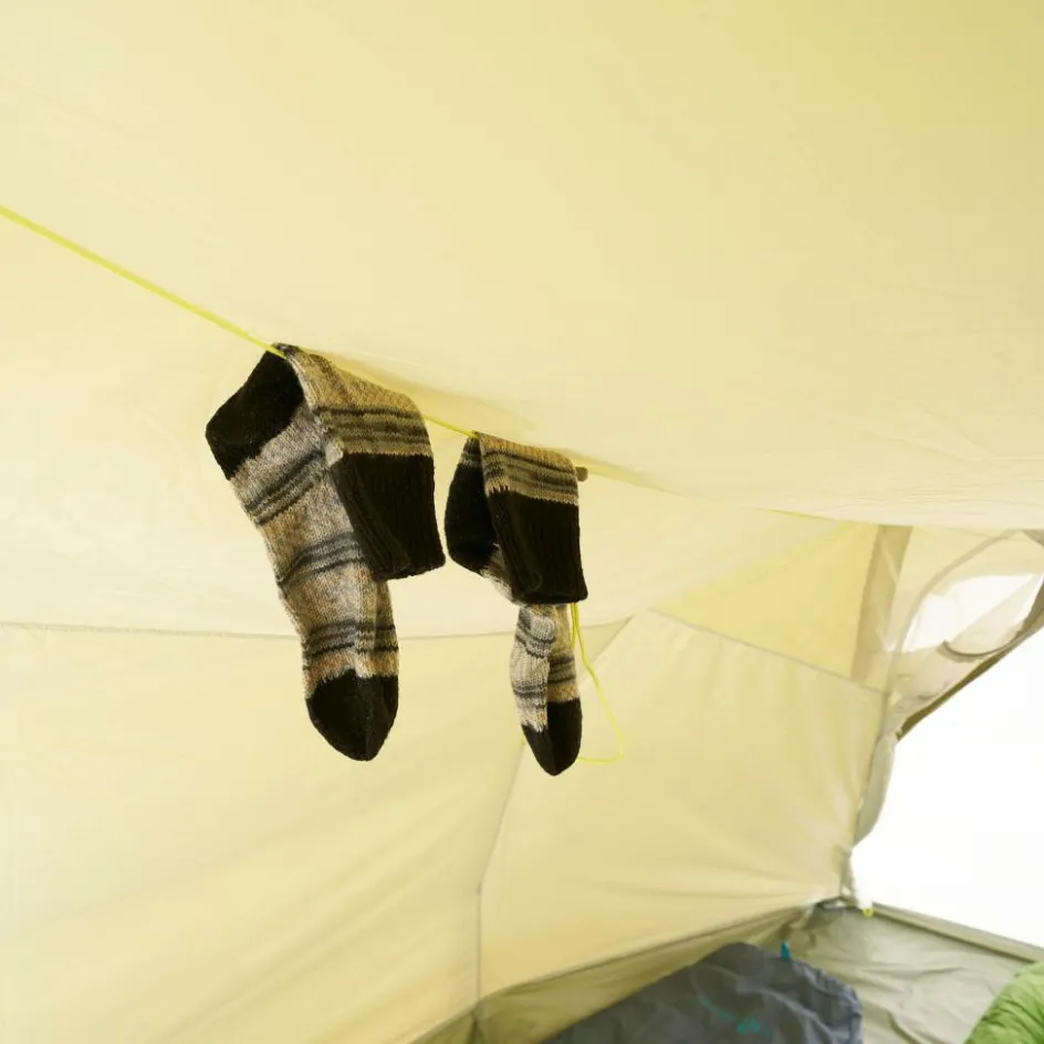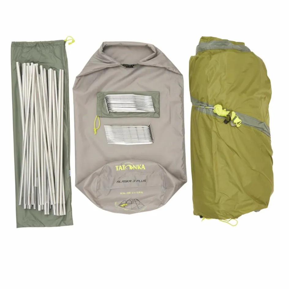 Hochgewachsene Personen finden im Alaska 3 Plus eine passende Behausung. Das Innenzelt ist 235 cm lang und bietet damit eine großzügige Liegelänge. Das Innenzelt kann aus der Apsis oder von hinten betreten werden, was auch die Möglichkeit der Querlüftung erlaubt. So kann eventuell anfallendes Kondenswasser am Morgen schnell abgelüftet werden. Auch sonst bietet es eine komfortable Ausstattung: Das Innenzelt verfügt neben zwei Mesh-Seitentaschen auch über eine Wäscheleine, auf der du deine Kleidung zum Lüften aufhängen kannst.