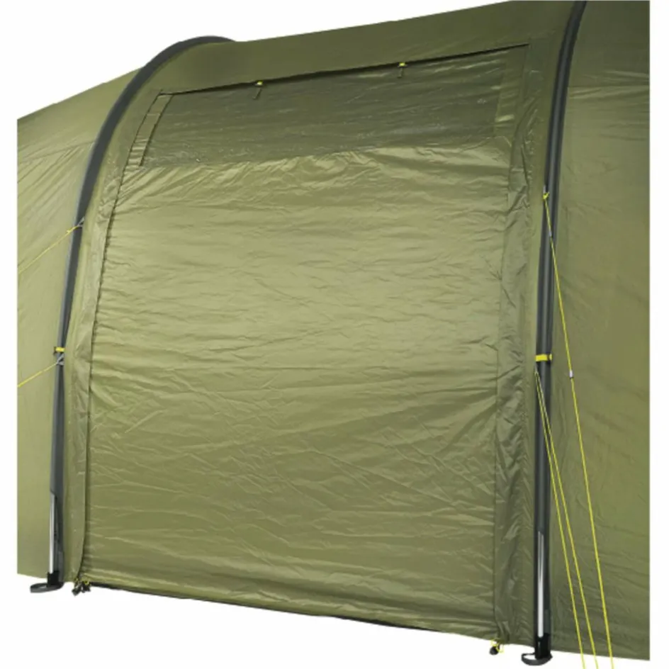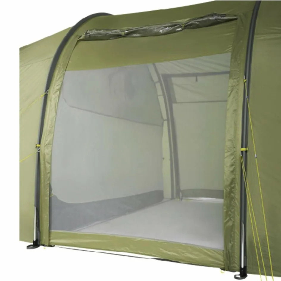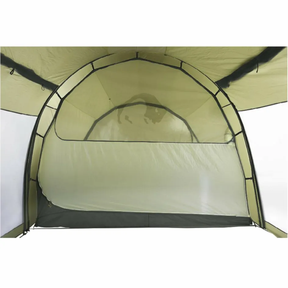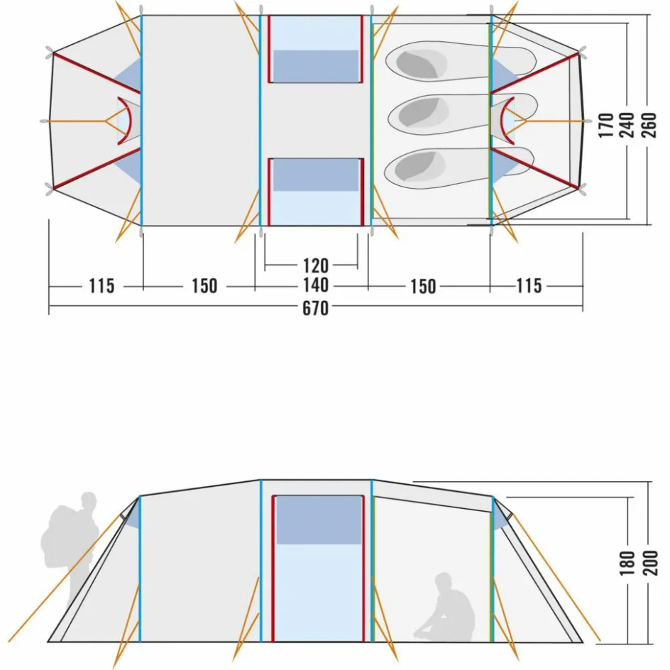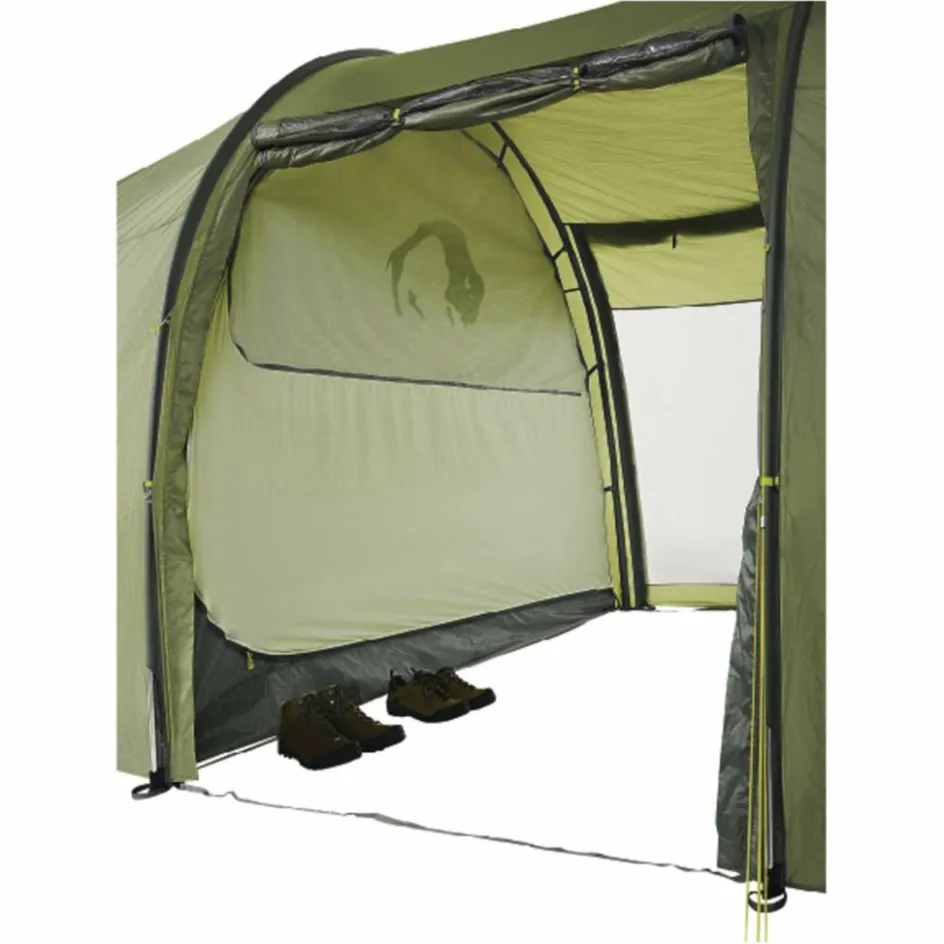 Das Family Trek II ist ein Familienzelt mit Stehhöhe für drei Personen mit extra-großer Apsis. Mit einer Gesamtlänge von 6,70 Meter und der stehhohen Konstruktion ist das Familien-Tunnelzelt Family Trek II ein echtes Raumwunder. Es bietet eine geräumige Schlafkabine für drei Personen und einen äußerst großzügig bemessenen Vorraum, dazu zwei zentrale, gegenüberliegende Eingänge sowie Eingänge an beiden Stirnseiten. Für genügend Licht im Inneren des Zeltes sorgen Fenster in den Seiteneingängen und an den Stirnseiten.