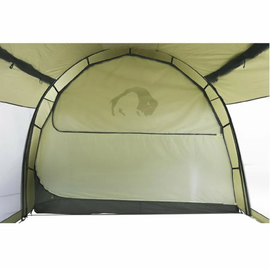 Das Tatonka Family Trek II wird mit vier Gestängebögen aus hochwertigem und bruchfestem Aluminium aufgestellt. Das Innenzelt kann anschließend einfach eingeknöpft werden. Außen- und Innenzelt sind auch in einem Schritt aufstellbar.