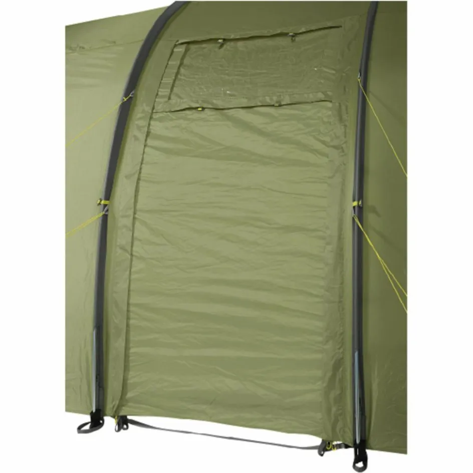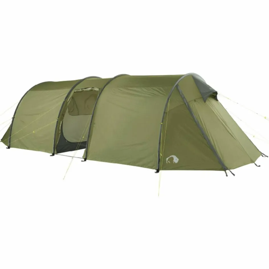 Das 4-Personen-Zelt Alaska Family DLX von Tatonka verfügt über zwei geräumige Schlafkabinen für vier bis maximal sechs Personen. In den Apsiden an beiden Längsseiten sowie in der zentralen Apsis in der Mitte steht viel Platz für die Ausrüstung zur Verfügung. Sowohl der Zelteingang in der Mitte als auch die Apsiden an den Seiten ermöglichen den Zugang zu den Innenzelten. Dank der Tunnelkonstruktion und einer Höhe von 1,40 bzw. 1,50 Metern in der Mitte, wird der Raum optimal genutzt.