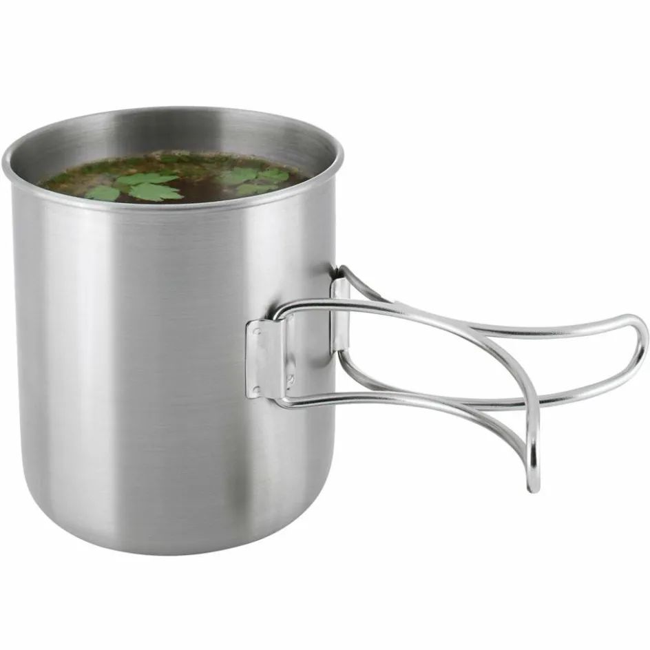 Becher mit 600 ml Volumen, den du dank der robusten Ausführung auch als kleinen Topf verwenden kannst. Die klappbaren Handgriffe reduzieren das Packmaß auf ein Minimum.