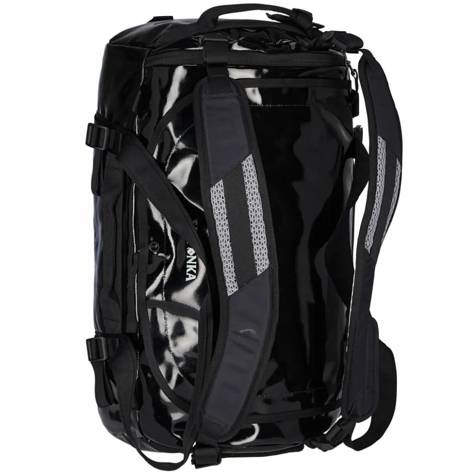 Das Planenmaterial der Reisetasche zeichnet sich durch seine hohe Abrieb- und Reißfestigkeit aus. Der Boden ist gepolstert und aus sehr strapazierfähigem Nylon gefertigt. Beide Materialien sind wasserabweisend.
