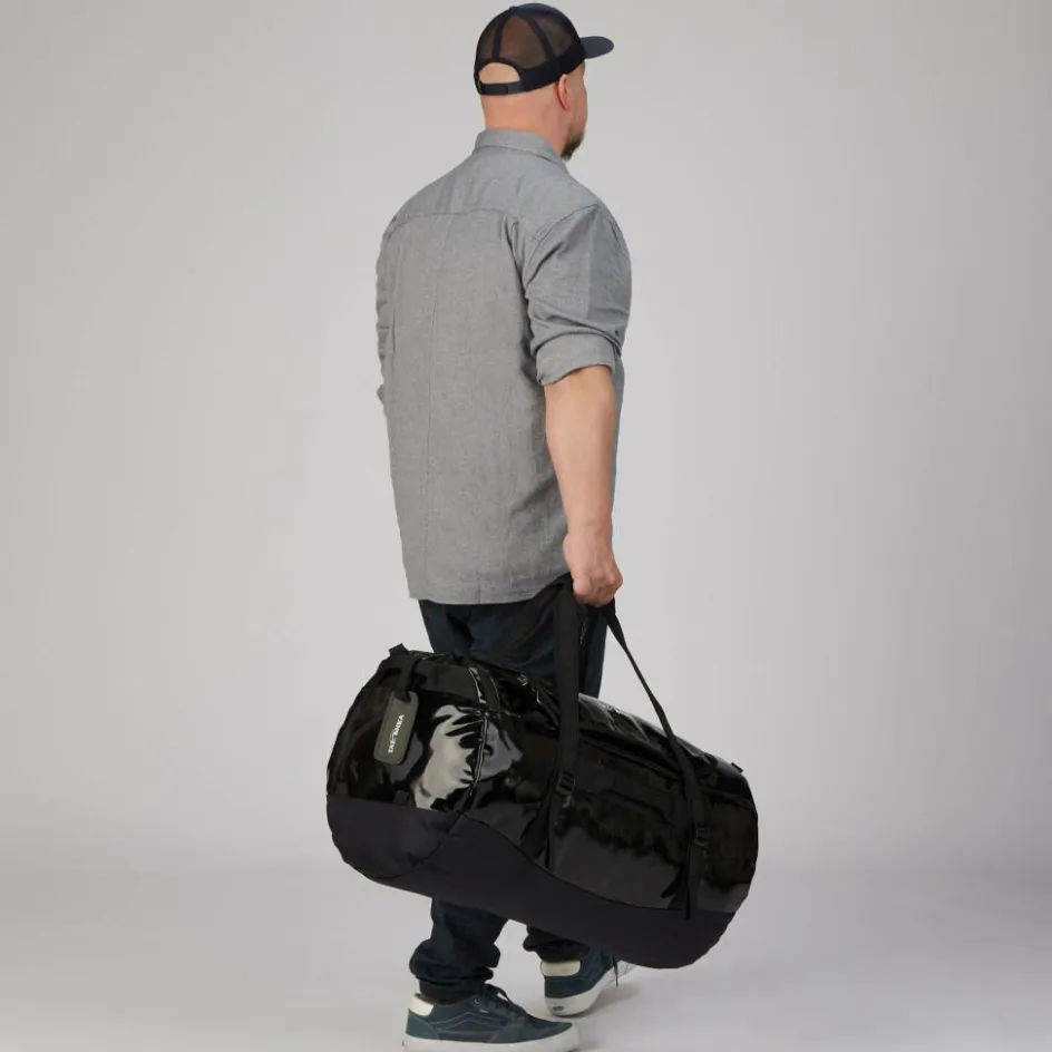 Die Barrel 65 hat zwei gepolsterte Schultergurte, mit denen du die Duffle komfortabel auf dem Rücken trägst. Bei Nichtgebrauch kannst du sie abnehmen und verstauen. Zusätzlich gibt es lange Tragehenkel mit gepolsterter Grifffläche. Zum Anheben und Verstauen findest du verstärkte Griffe ringsum. Praktisch sind auch die verschiedenen Möglichkeiten, deine Ausrüstung unterzubringen. Es gibt ein RV-Fach an der kurzen Seite sowie mehrere kleine Fächer im Innern. An den Schlaufen außen kannst du ebenfalls Ausrüstung befestigen.