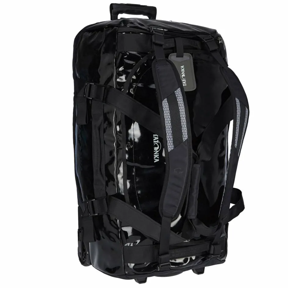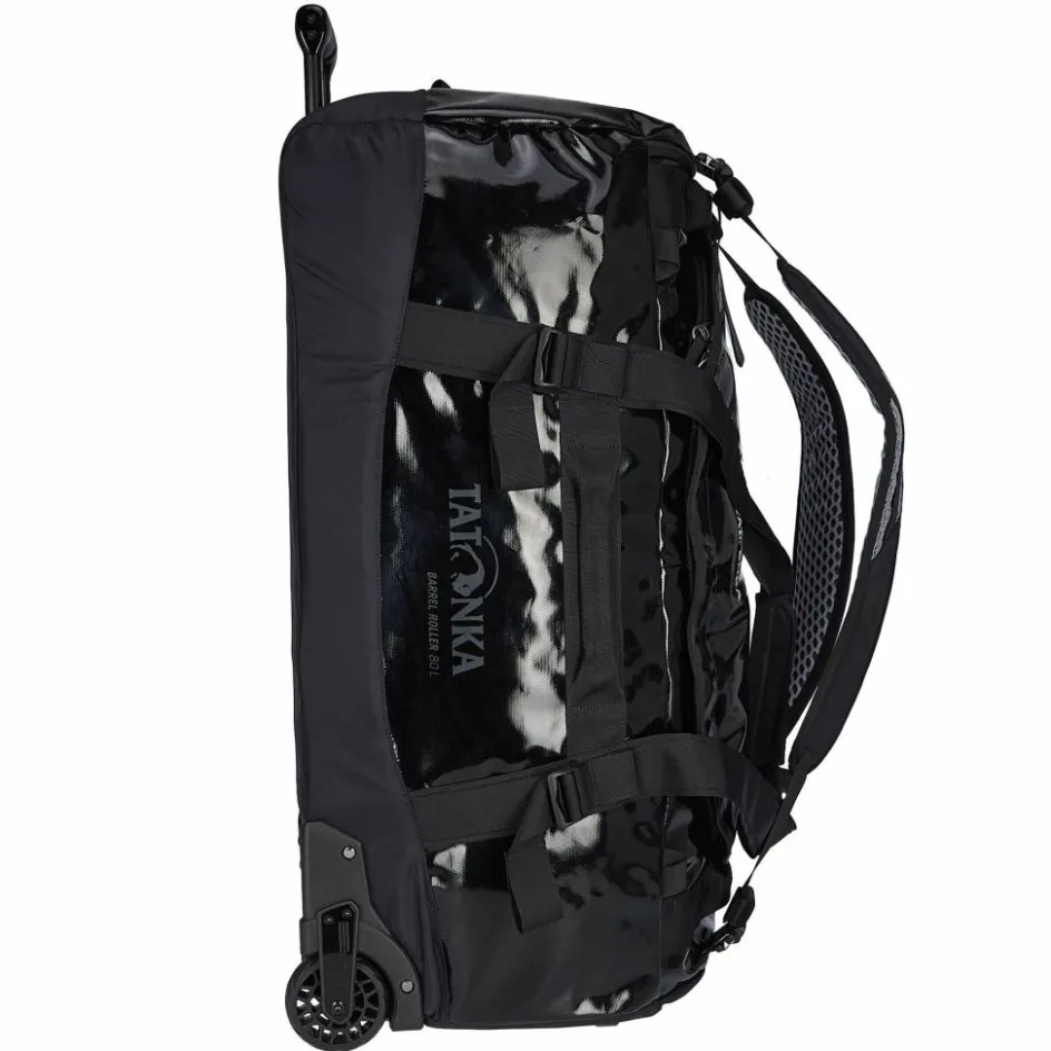Die Barrel Roller 80 kommt in der Neuauflage ohne umweltschädliches PFAS aus. Dank TPU–Beschichtung ist der Inhalt dennoch bestens vor Feuchtigkeit geschützt. Auch in puncto Design hat sich das Obermaterial weiterentwickelt und besticht jetzt mit einer schicken Hochglanzoptik. Ebenfalls neu: Die abnehmbaren Schultergurte lassen sich dank mehrerer Befestigungsschlaufen flexibel umpositionieren und als Tragegurt nutzen. Zwei zusätzliche Tragegriffe an den Seiten (insgesamt vier) erleichtern zudem die Handhabung. Und damit die großvolumige Reisetasche mit Rollen auch bei geringerer Beladung formstabil bleibt, lässt sie sich mithilfe seitlicher Riemen einfach komprimieren.