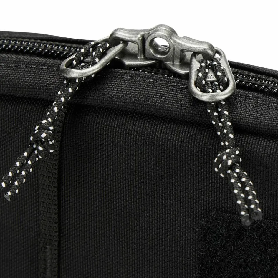 Außen sorgen drei Gurtbandschlaufen am Rücken und Daisychains auf der Front dafür, dass du die Tasche je nach Setup befestigen oder ergänzen kannst. Auf der Vorderseite sitzt eine Klettfläche, an der du Patches anbringen kannst.
