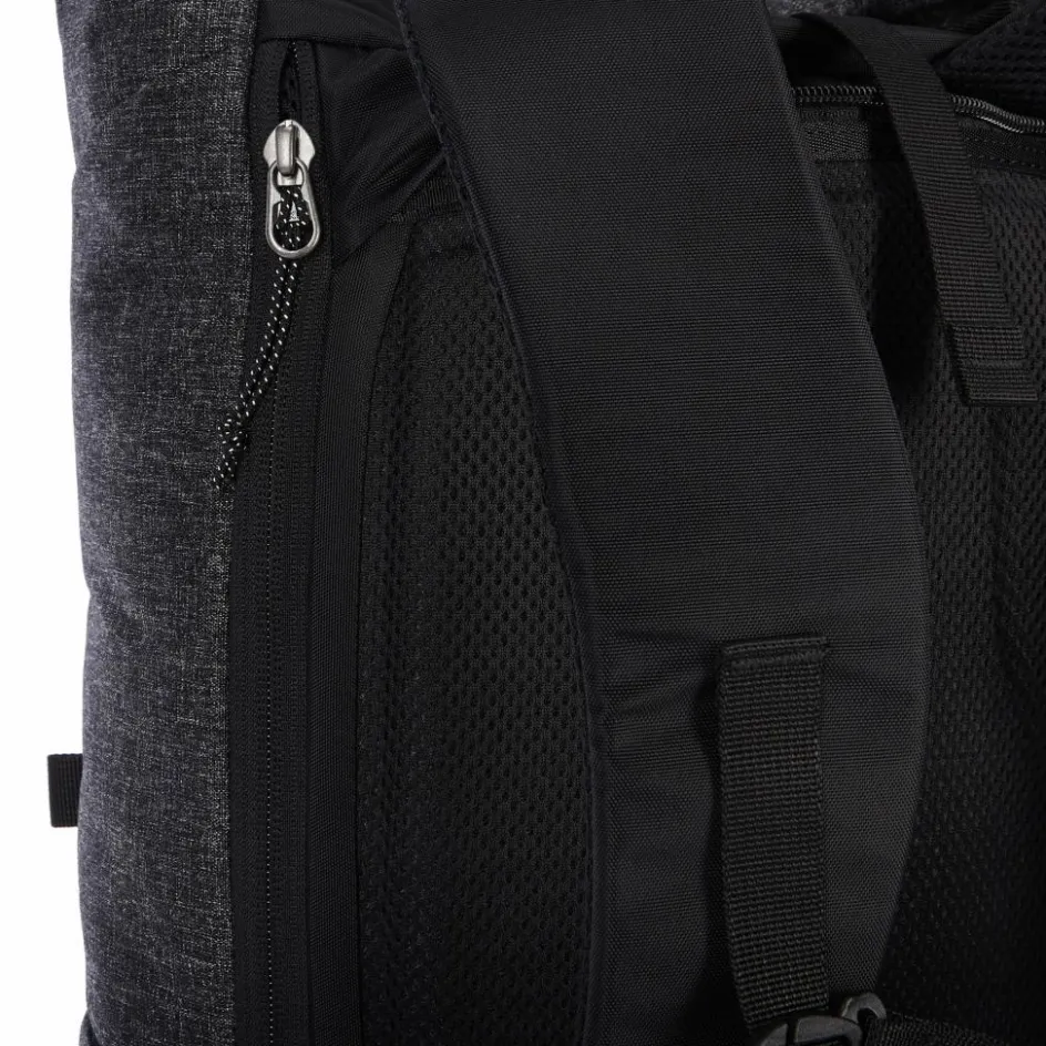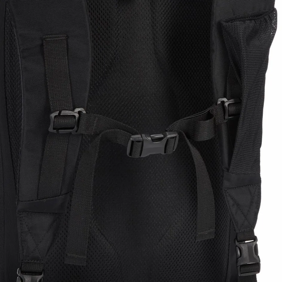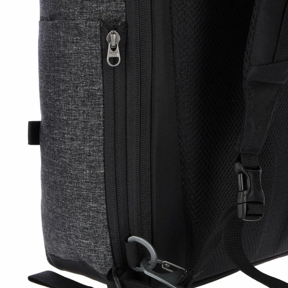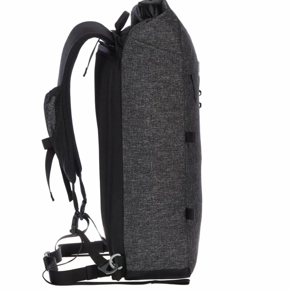 Beim Fliegen und im Zug kannst du die Schultergurte im eigenen RV-Fach unauffällig verstauen. Das macht den ganzen Rucksack schlanker und es kann sich kein Gurt unter dem Sitz oder in der Gepäckablage verhaken. Das seitliche Steckfach kannst du per RV in der Weite verstellen. So liegt es bei Nichtgebrauch unauffällig an.