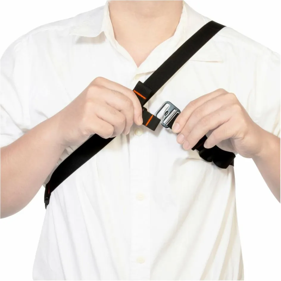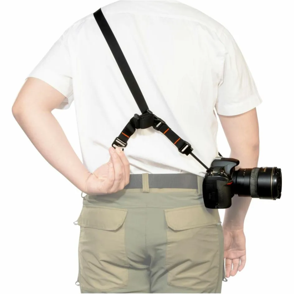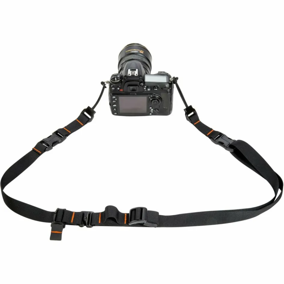Das Camera Strap Set besteht aus einem verstellbaren Schultertrageriemen mit integriertem Unterarmriemen und integrierter Handschlaufe. Der Unterarmriemen verhindert das Verrutschen der Kamera, wenn sie auf dem Rücken getragen wird, zum Beispiel beim Fahrradfahren.