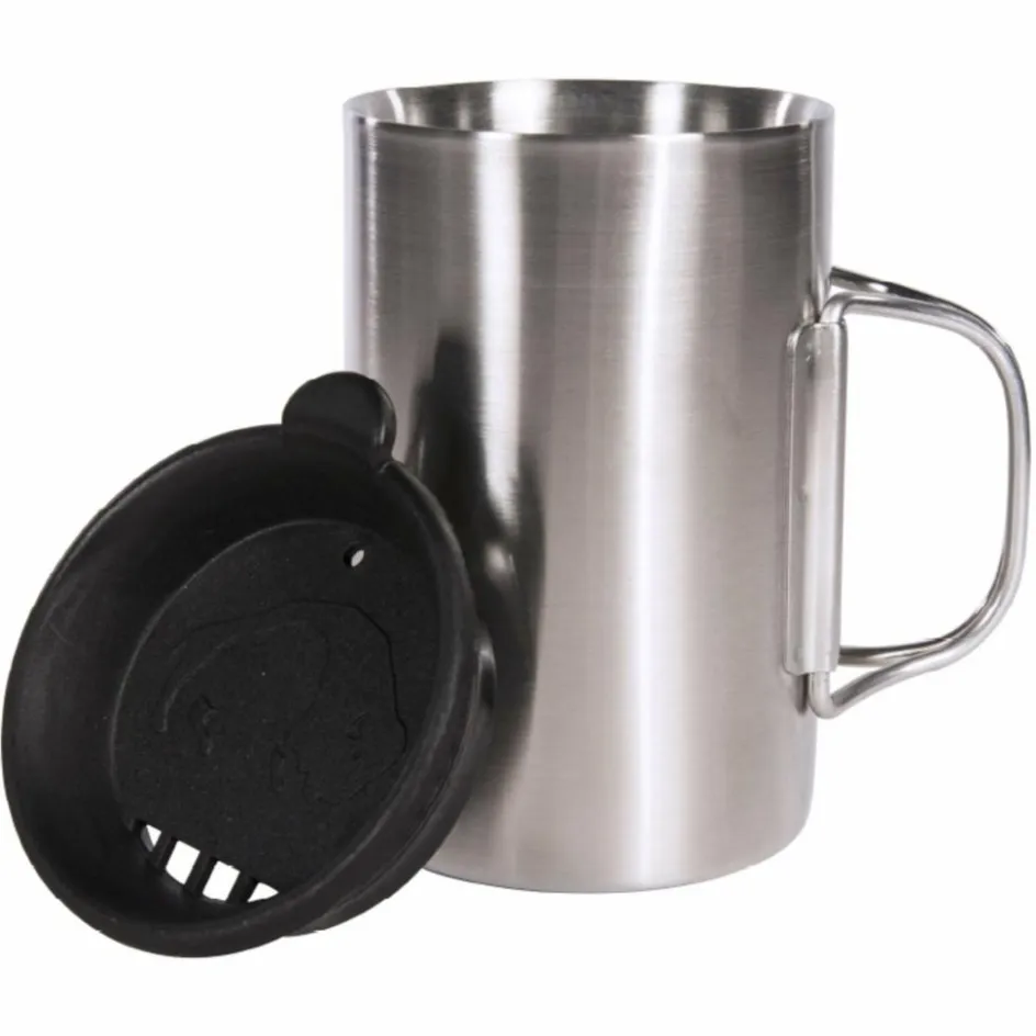 Der Thermobecher besteht aus rostfreiem, doppelwandigem 18/8-Edelstahl und ist mit einem klappbaren Henkel sowie einer innenliegenden Volumenskalierung ausgestattet. Der mitgelieferte Deckel sorgt für zusätzliche Isolation von Heiß- oder Kaltgetränken. Perfekt für Camping, Trekking oder Festivals.