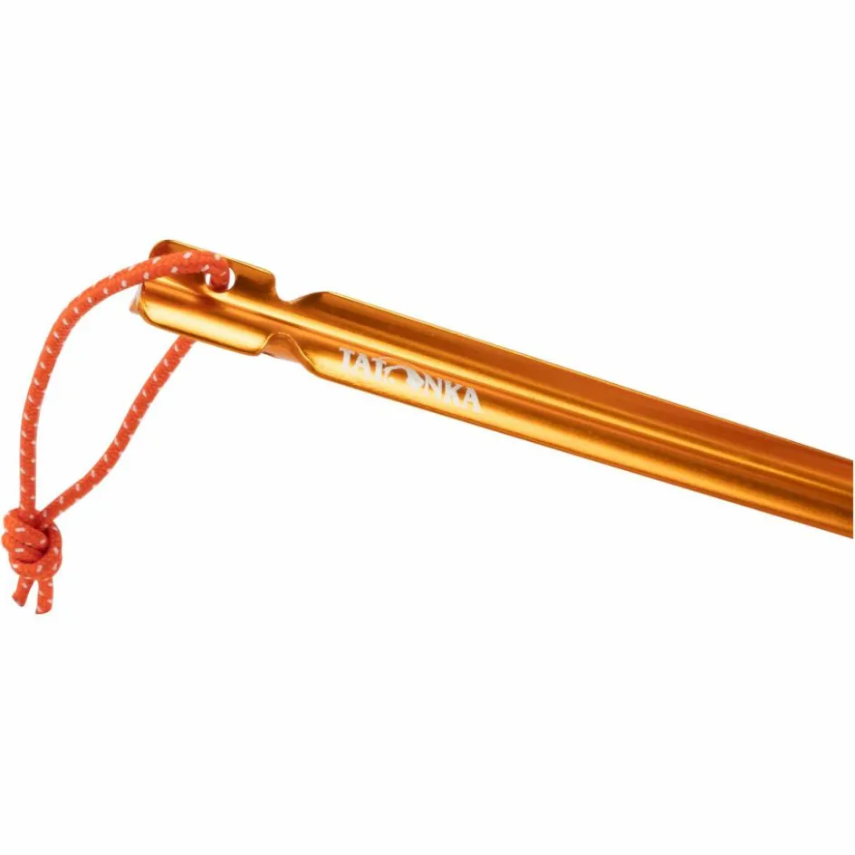 Der leichte Aluminium-Zelthering besitzt ein Y-Profil und ist 15 cm lang. Die spezielle Y-Form verhindert das Verbiegen des Zeltherings und erleichtert das Einschlagen in harte Böden. In gut sichtbarem Orange und mit Schlaufe zum Herausziehen.