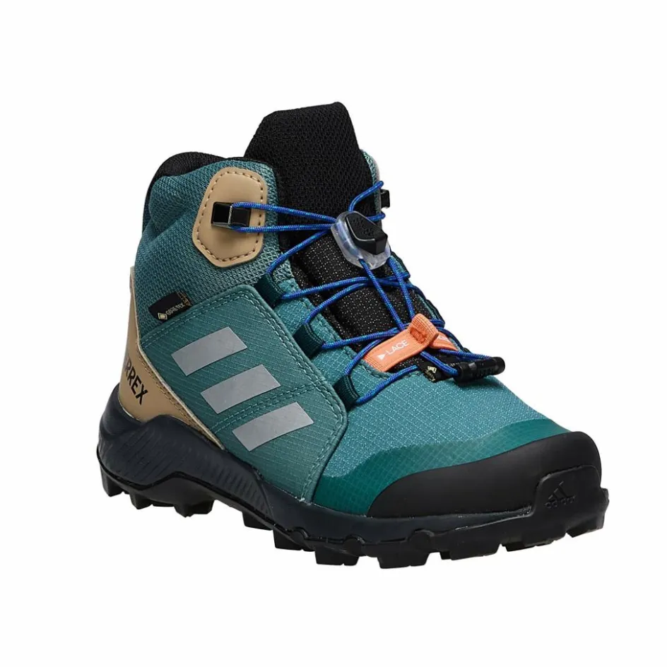 Leicht am Fuß, knöchelhoch, angemessen stabil im Gelände und so designt, dass Kleine und Große gleichermaßen gut auf ihre Kosten kommen. So lässt es sich prima bei nassen und matschigen Bedingungen herumtoben! Die Terrex Mid Gore-Tex Hiking Shoes sind dank Speed-Lacing-System schnell angezogen und wieder ausgezogen: Mit diesem Schnellschnürzug mit Tanka-Verschluss brauchen Kleine keine Hilfe, und Große können es lässig nehmen.