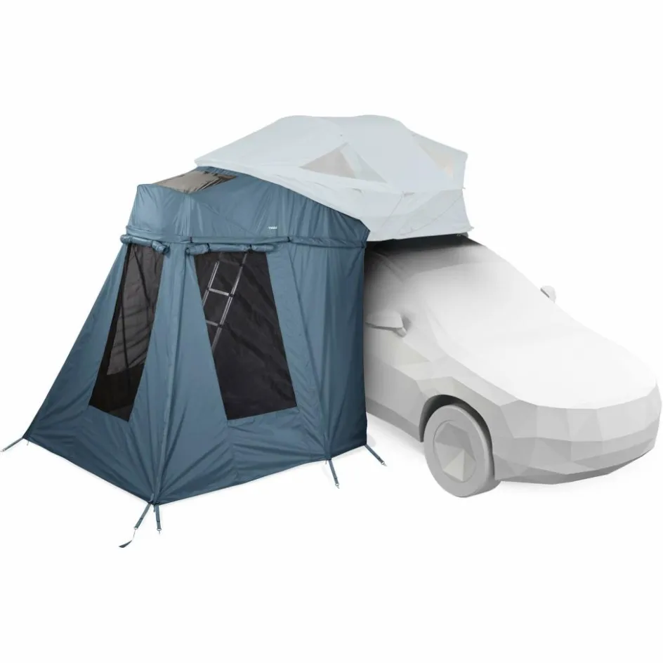 Das Praktische Approach Annex Vorzelt von Thule ist die optimale Ergänzung für dein Approach-Dachzelt. Vor allem an verregneten Tagen spendet es dir deutlich mehr trockenen Stauraum, beispielsweise für Tisch und Stühle.
