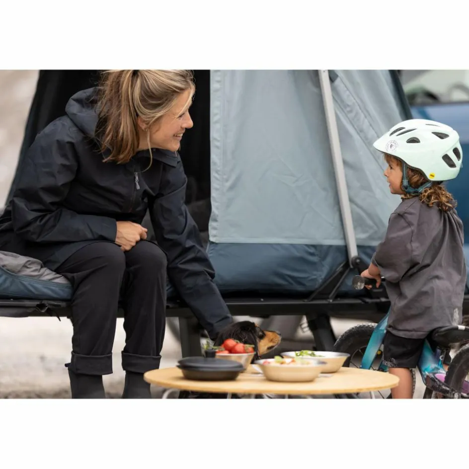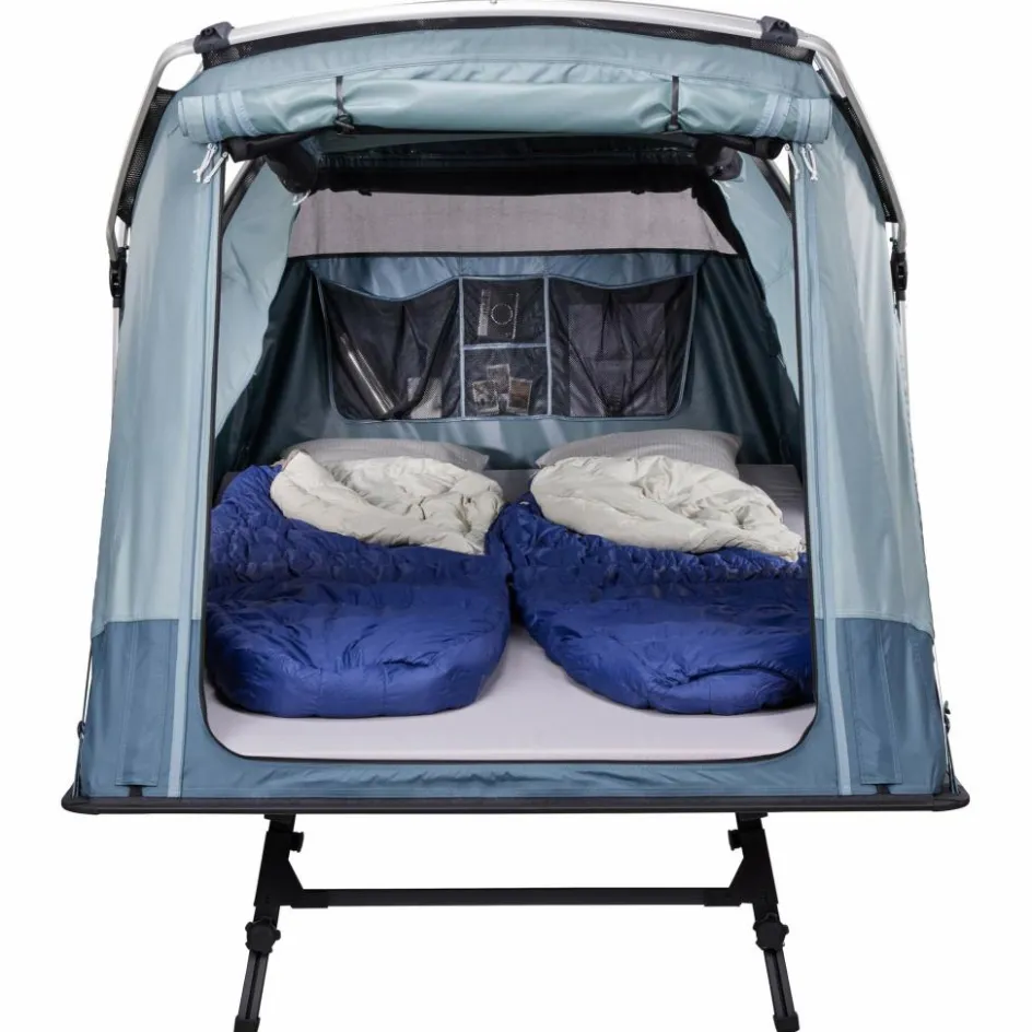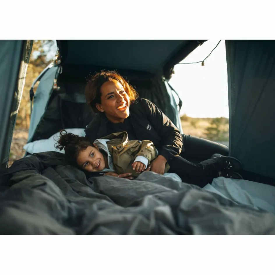 Ein weiterer Vorteil des Outset Towbars: Das Zelt steht dank seiner Füße auch von selbst. Wenn du dich also an einem Ort aufhältst, den du während der nächsten Tage nicht verlassen möchtest, aber zum Einkaufen oder für einen Tagesausflug etwas weiter fahren musst, kannst du das Zelt einfach an Ort und Stelle stehen lassen und dich auf dein nächstes Abenteuer begeben. Das Zelt ist so hoch, dass sich bei schlechterem Wetter auch aufrecht sitzend im Innenraum aufgehalten werden kann.