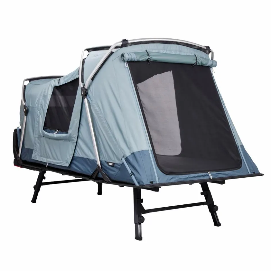 Das Zelt Outset Towbar ist wirklich außergewöhnlich! Das Zelt, welches an der Anhängerkupplung deines Autos angebracht wird, beeindruckt durch einen einfachen Aufbau und einen niedrigen Einstieg!