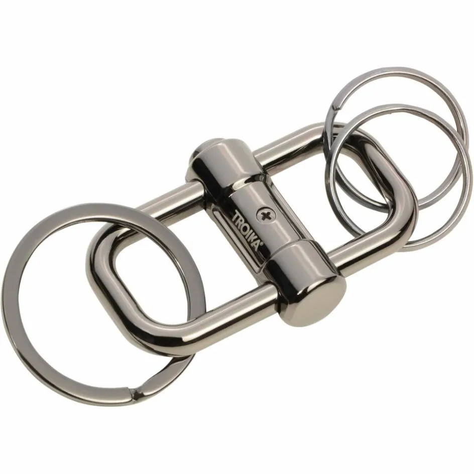 Mit diesem Schlüsselanhänger hast du nur die Schlüssel bei dir, die du auch wirklich benötigst. Per Knopfdruck (seitlich) lässt sich die Verriegelung lösen und der Bolzen zur Seite schieben.