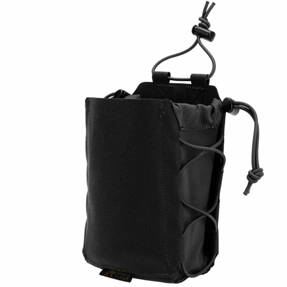 Der Inhalt der Tasche lässt sich per Kordel fixieren. Die Seiten sind aus elastischem Material und haben jeweils eine Kordel, über die die Tasche komprimiert wird. Sie eignet sich für Trinkflaschen und Stative bis circa 10,6 cm Durchmesser.
