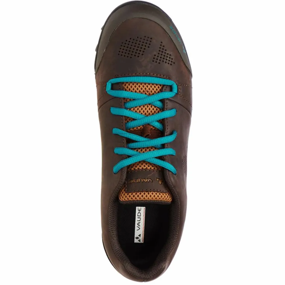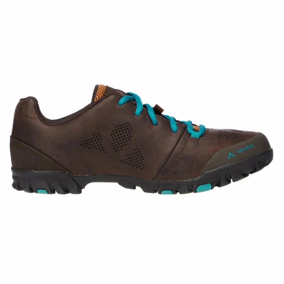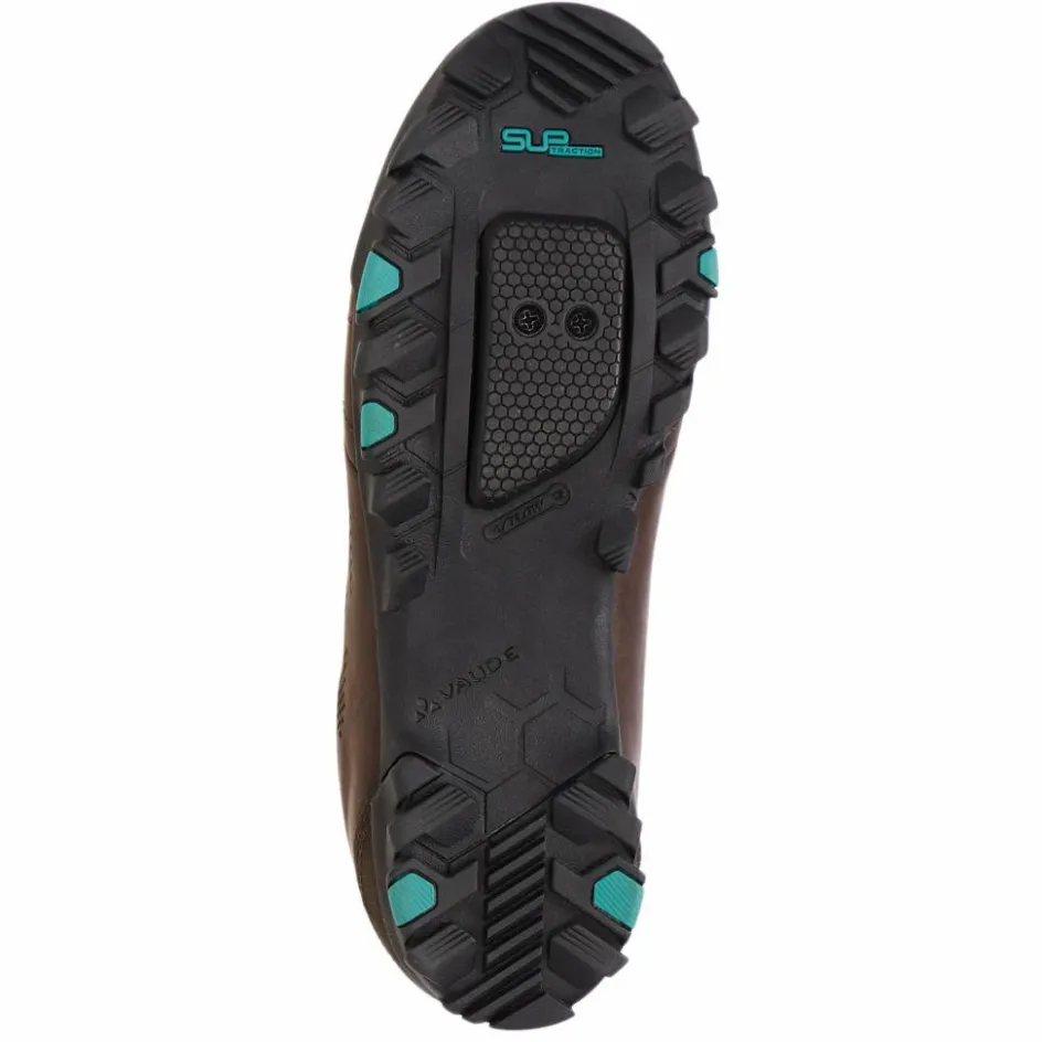 Die innovative SUPtraction R20 Sohle aus 20 % recyceltem Gummi bietet ein modernes Profil mit exzellenter Griffigkeit sowohl bei trockenen als auch bei nassen Straßenverhältnissen. Die mittlere Steifigkeit (V-Flow 5) sorgt für effiziente Kraftübertragung auf dem Pedal und eine angenehme Abrollbewegung beim Gehen. Durch die abnehmbare Cleatabdeckung ist der Schuh mit gängigen Klicksystemen kompatibel. Das VAUDE Green Shape-Label steht für ein umweltfreundliches, funktionelles Produkt aus nachhaltigen Materialien.