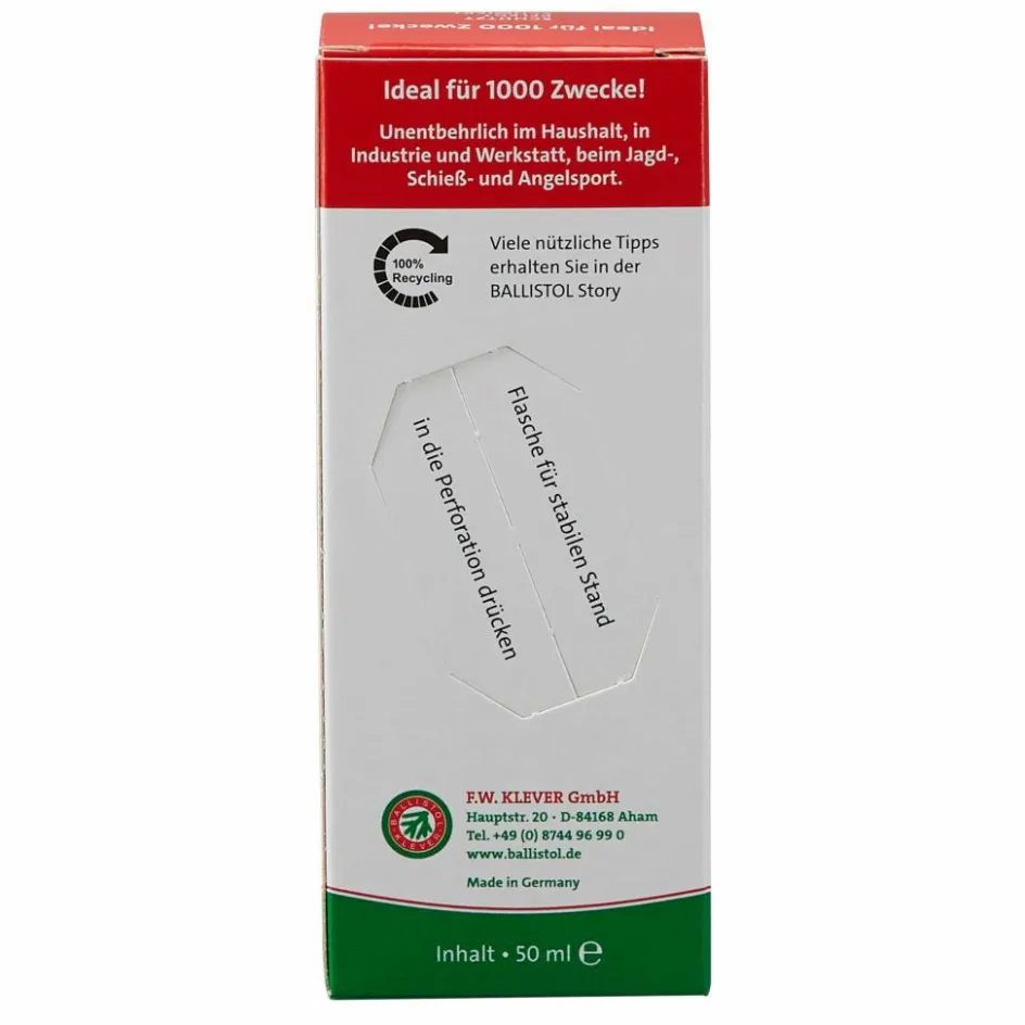 Bewährtes Spezialöl zur Pflege, Reinigung und Konservierung von Waffen, Maschinen und Instrumenten. Für alle Metalle; Ballistol verharzt selbst nach vielen Jahren nicht.