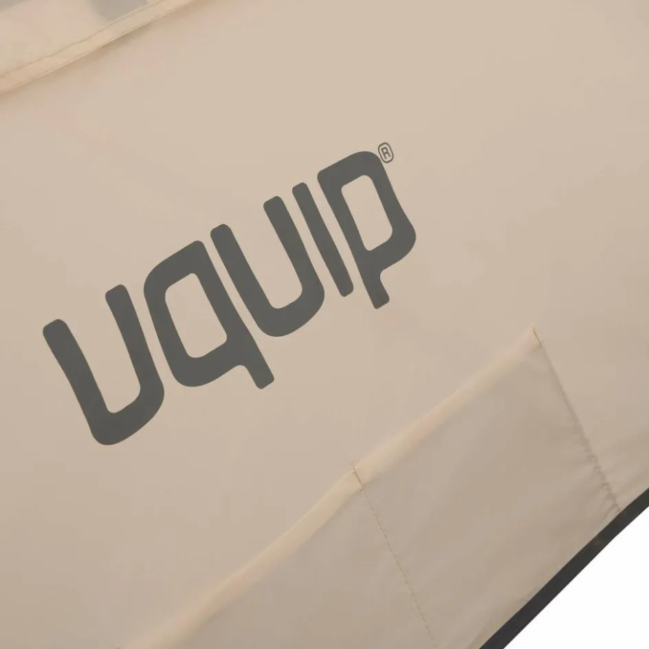 Möchtest du ins Wasser springen, kannst du den Eingang mit der Bodenplane verschließen. So liegen die Sachen sichtgeschützt im Innern der Strandmuschel. Seitlich angebrachte Taschen können derweil mit Sand oder Steinen gefüllt werden, damit Speedy nicht vom Wind davongetragen wird.