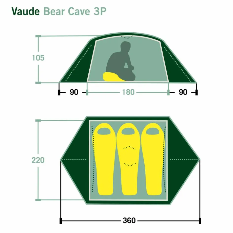 Das Bear Cave 3P ist ein geräumiges Kuppelzelt für drei Personen, das sich durch seine zwei Eingangsoptionen variabel aufstellen lässt. Zwei Apsiden bieten Platz für Trekkingrucksäcke und Schuhe.