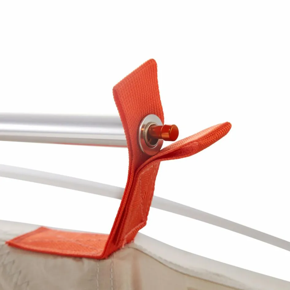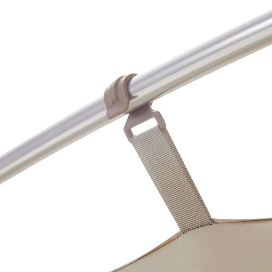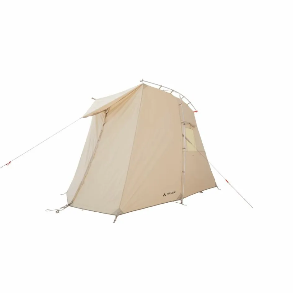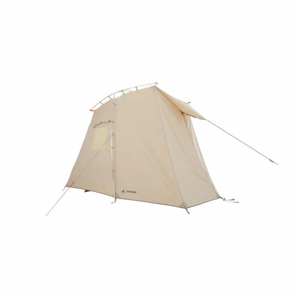 Bei schönem Wetter kann der Eingang mit Tarpstangen (separat erhältlich) zum Sonnensegel abgespannt werden, wodurch ein schönes Schattenplätzchen zum Relaxen entsteht.