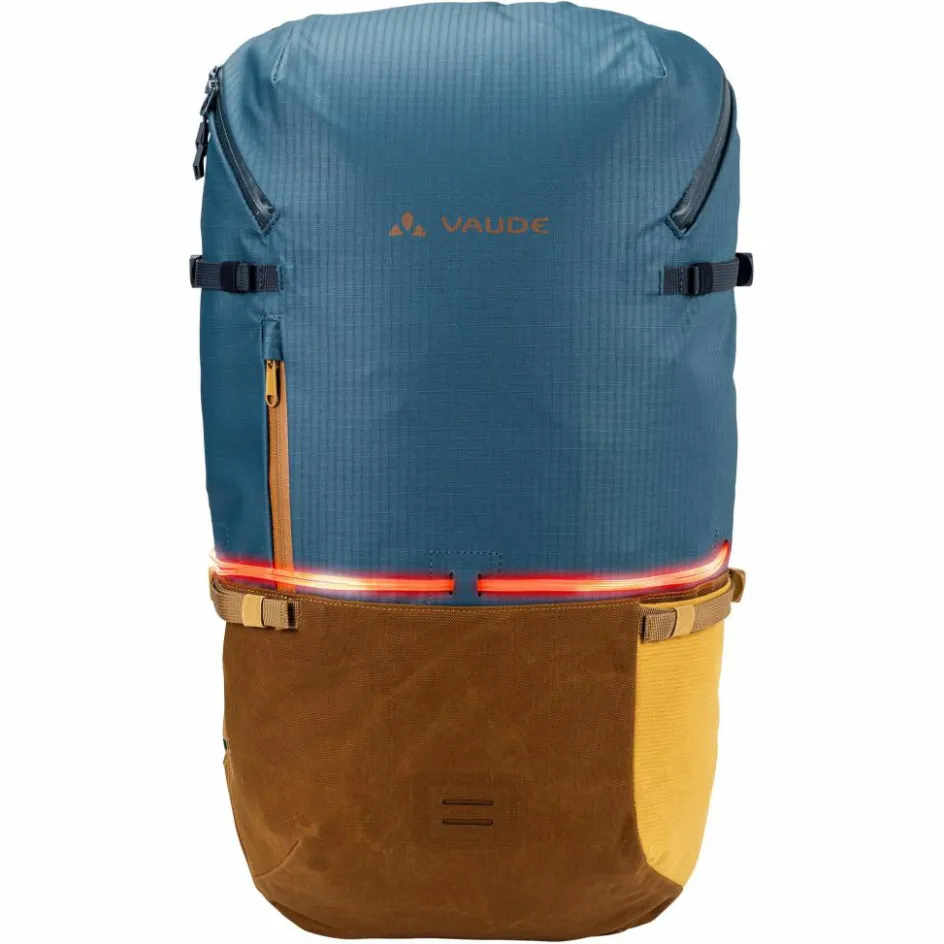 Das Besondere am CityGo 30 II ist, dass du ihn mit dem Vaude Light Me Up Kit koppeln (siehe Zubehör) kannst. Das Kit besteht aus zwei wetterfesten LED-Lichtschläuchen, die du in die vorgegebene Führung auf der Front deines CityGo 30 II einfädelst, und einem USB-Stecker. Diesen kannst du einfach mit einer handelsüblichen Powerbank verbinden (nicht im Lieferumfang inbegriffen).