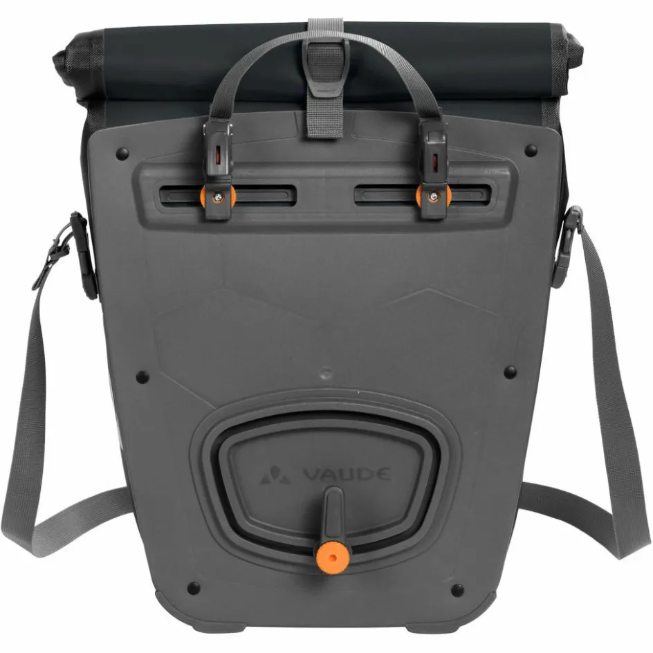 Die Fahrradtasche Aqua Back Single ist mit dem QMR 2.0-System ausgestattet: eine Schiene mit selbstsichernden Haken ist hier für die Verbindung zum Gepäckträger verantwortlich. Das System lässt sich mit Rohrdurchmessern von 8 bis 16 Millimetern verwenden und ist damit mit sehr vielen Gepäckträgern verwendbar. Die Haken lassen sich werkzeuglos auf ihrer Schiene verstellen. Außerdem kannst du die Tasche auch direkt am Haken abschließen.