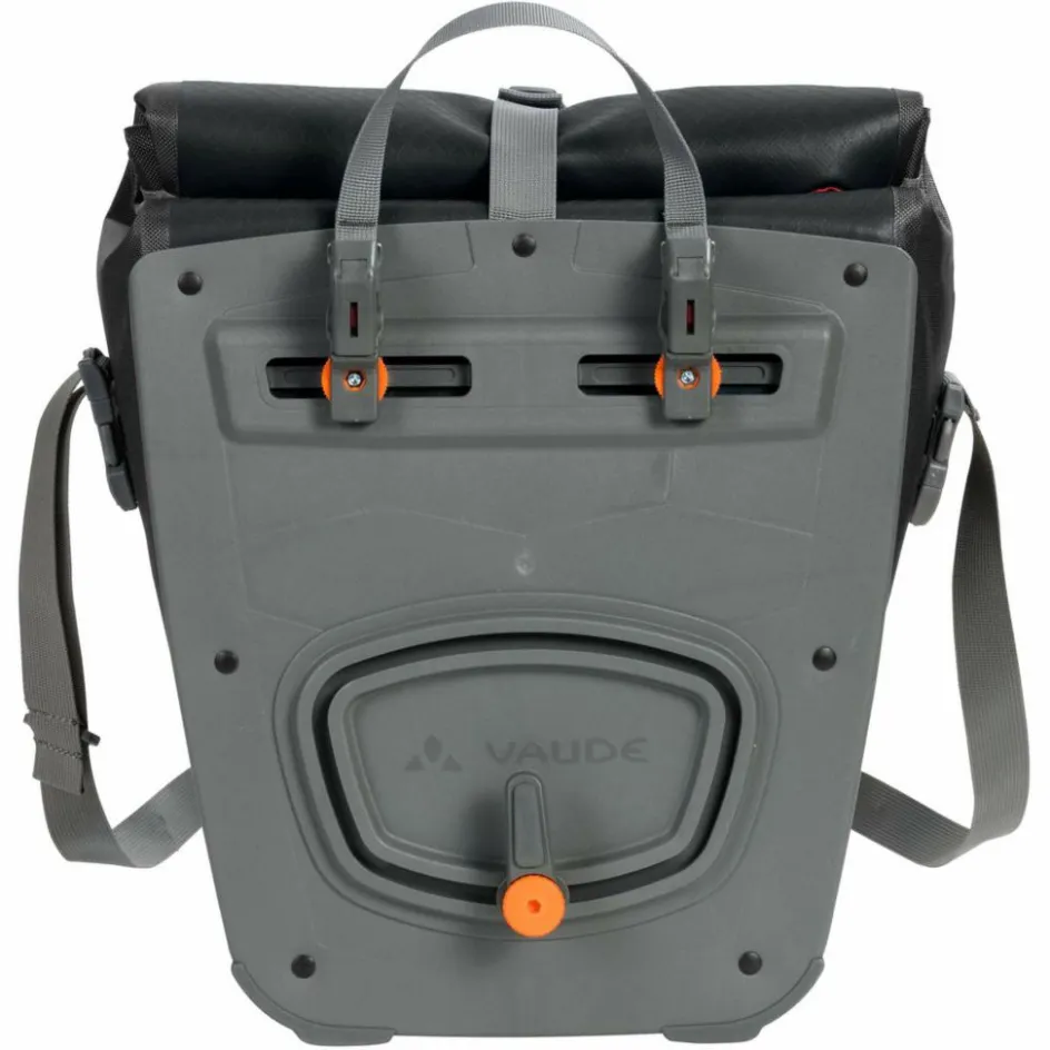 Sehr variabel am Rad: Das Aqua Front-Taschenpaar kannst du am Vorderrad- als auch am Hinterrad-Gepäckträger befestigen. Außerdem kannst du das Volumen per Rollverschluss einfach variieren.