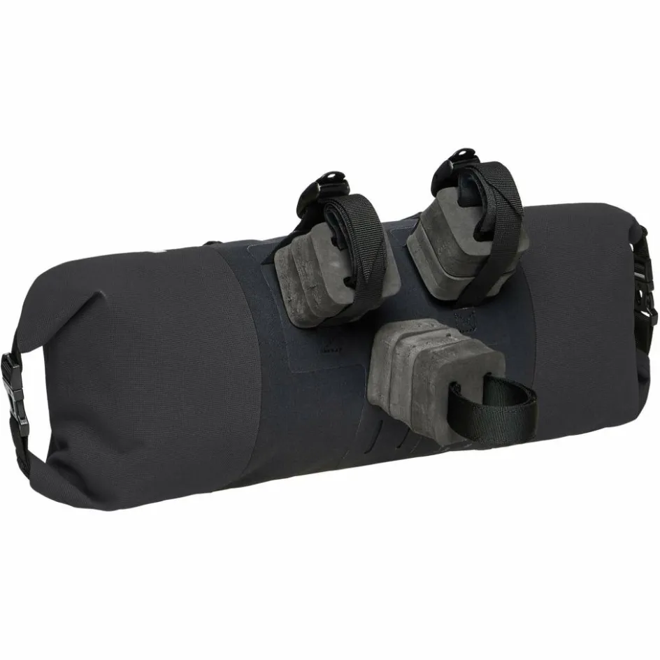 Die wasserdicht verschweißte Lenkerrolle Trailfront Compact sorgt für ein unbeschwertes Touren-Wochenende. Die Lenkerrolle mit 6,2 Litern Volumen ist von beiden Seiten zugänglich und über Wickelverschlüsse wasserdicht komprimierbar und eignet sich hervorragend für leichtes Gepäck oder einen Schlafsack. Über Packriemen auf der Oberseite kannst du zusätzliches Gepäck und sogar ein Zelt außen befestigen. Die Klettfixierungen machen ein schnelles, dabei sehr stabiles Anbringen am Lenker möglich. Die variabel einstellbare Elastikkordel hält alles fest, was schnell greifbar sein soll.