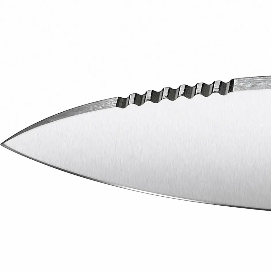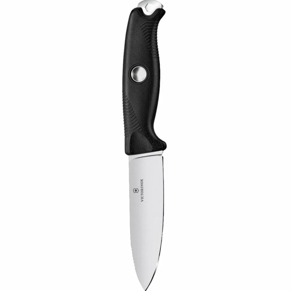 Das Venture Pro bietet dir eine hohe Funktionalität; die Klinge zeichnet sich durch eine sehr gute Schnitthaltigkeit aus (Härte: 59HRC) und bietet dank Full-Tang-Bauweise die nötige Robustheit bei groben Arbeiten. Eine scharfe 90-Grad-Kante am verlängerten Erl erlaubt dir das Schaben von Kienspänen sowie Feinarbeiten beim Schnitzen (konkave Formen, etwa beim Löffel). Der Klingenrücken hat ebenfalls eine scharfe Kante zum Schaben und Funkenschlagen mit dem Feuerstahl.