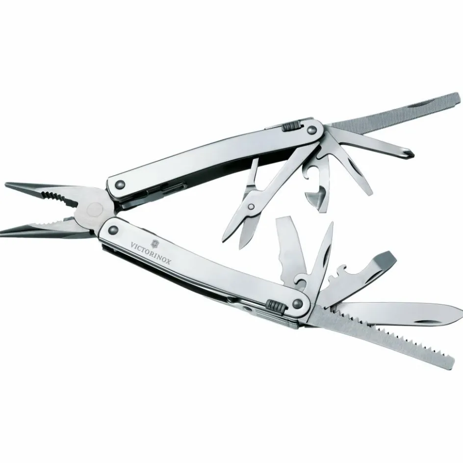 Alle Werkzeugteile des Multitools bestehen aus rostfreiem Inox-Stahl (Werksbezeichnung 1.4110 – in den USA auch bekannt als 440A) mit einer Härte von 56 HRC. Das Material zeichnet sich durch eine mittlere Schnitthaltigkeit aus und lässt sich auch von Anfängern leicht nachschärfen. Mit etwas Übung gelingt es, die Messerklinge auf Rasiermesserschärfe zu schleifen. Victorinox setzt seit den Anfängen auf diesen bewährten Werkzeugstahl.