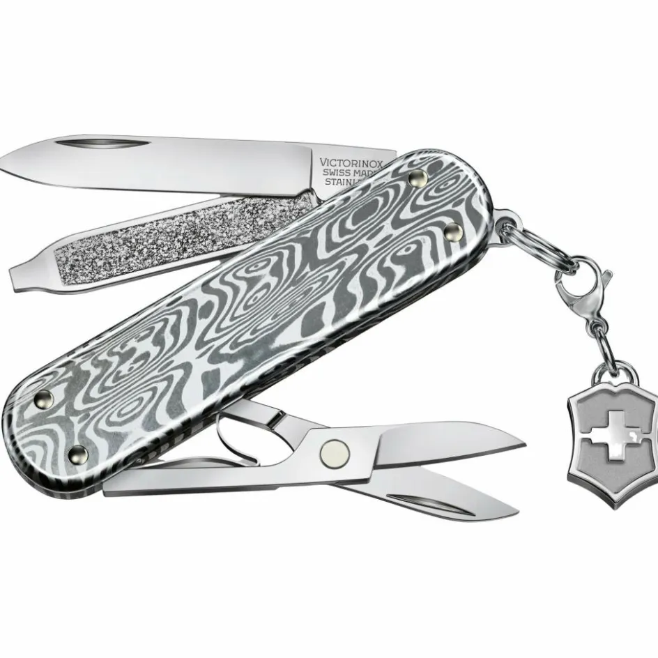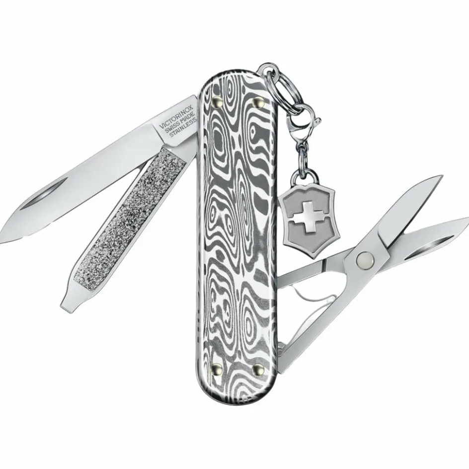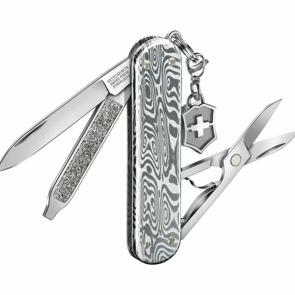 Dieses exklusive und besonders schöne Taschenmesser ist mit Damast-Griffschalen im einzigartigen Odin-Heim-Muster ausgestattet und gehört zur exklusiven Brilliant Serie von Victorinox. Das Classic SD Modell ist eines der bekanntesten Messer aus dem Schweizer Hause. Die geringen Abmessungen erlauben es, es jederzeit bei sich zu tragen – sei es in der Hosentasche oder am Schlüsselbund.