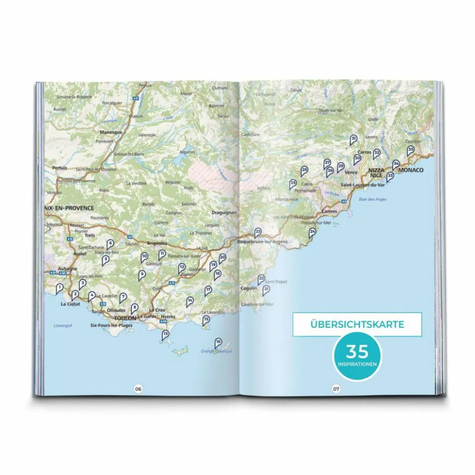 Besser vorher schon wissen, was es zu sehen gibt: Alle 35 Natur- und Wanderhighlights findest du im kompakten Reiseführer Inspiration Cote d Azur. Wasserfälle, einsame Buchten, atemberaubende Aussichten oder einmalige Bergdörfer. Wer will solche Geheim-Tipps nicht schon vor der Reise erfahren? Perfekt für die Urlaubsplanung. So bekommt man schnell einen Überblick, wie man das Beste aus dem Urlaub oder Kurzurlaub macht. Dabei liegt der Fokus voll auf der Natur und einem Aktiv-Urlaub. Vorgestellt werden alle Ziele mit der dazu passenden Wandertour. Eingezeichnet in einer Karte, kompakt beschrieben und mit einem Foto ausgestattet bekommst du schnell einen schönen Eindruck was dich erwartet.