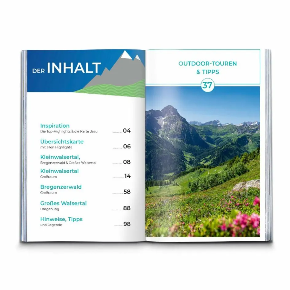 Besser vorher schon wissen, was es zu sehen gibt: Alle 37 Natur- und Wanderhighlights findest du im kompakten Reiseführer Inspiration Kleinwalsertal & Bregenzerwald. Wasserfälle, einsame Buchten, atemberaubende Aussichten oder einmalige Bergdörfer. Wer will solche Geheim-Tipps nicht schon vor der Reise erfahren? Perfekt für die Urlaubsplanung. So bekommt man schnell einen Überblick, wie man das Beste aus dem Urlaub oder Kurzurlaub macht. Dabei liegt der Fokus voll auf der Natur und einem Aktiv-Urlaub. Vorgestellt werden alle Ziele mit der dazu passenden Wandertour. Eingezeichnet in einer Karte, kompakt beschrieben und mit einem Foto ausgestattet bekommst du schnell einen schönen Eindruck was dich erwartet.