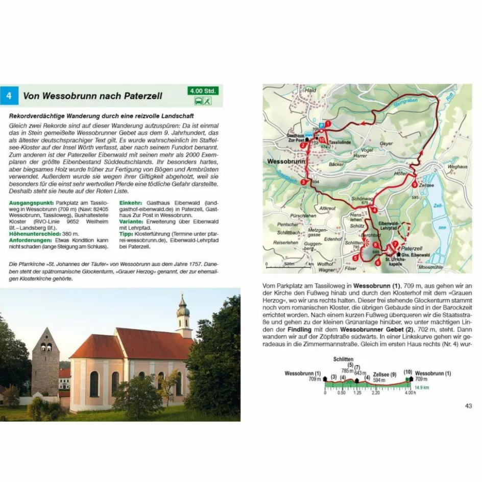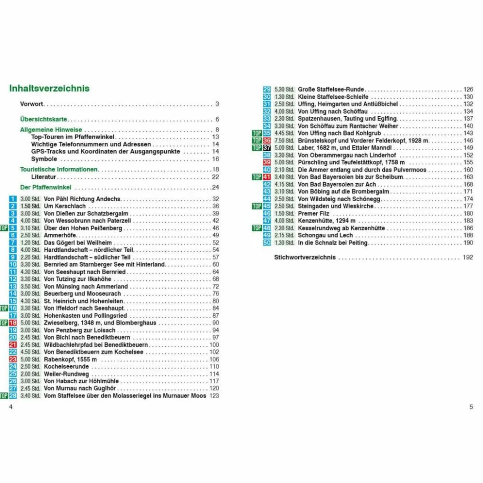 Sämtliche Tourenvorschläge sind durch Kurzinfos mit allen wichtigen Angaben zur Wanderung, exakte Wegbeschreibungen, Kartenausschnitte mit eingezeichnetem Routenverlauf und aussagekräftige Höhenprofile vorgestellt. Geprüfte GPS-Tracks stehen zum Download bereit und machen die Navigation unterwegs ganz einfach. Nicht nur bequem, sondern auch umweltfreundlich ist, dass fast alle Wanderungen mit Bahn und Bus erreichbar sind. Die vielen Freizeittipps zu Museen, Sehenswürdigkeiten oder Erlebnisbädern runden die Wandertage im Pfaffenwinkel perfekt ab und eignen sich natürlich auch bestens für wanderfreie Tage.