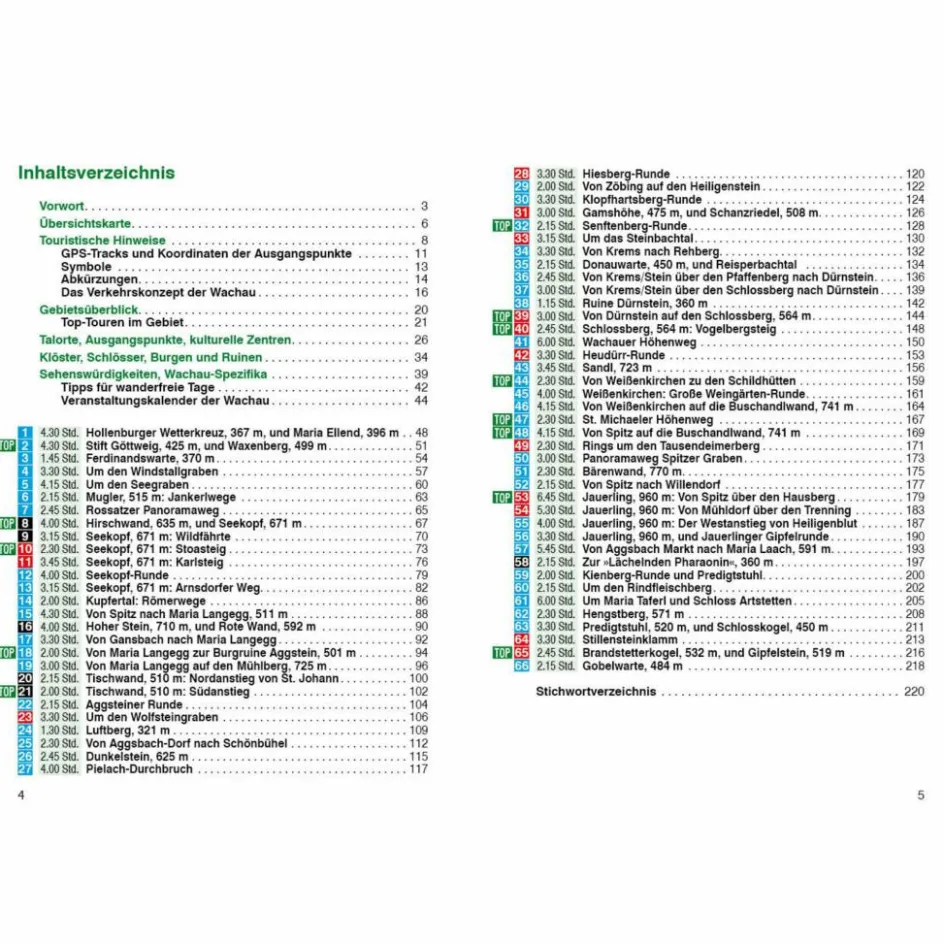 Nicht nur Naturliebhaber, sondern auch kulturinteressierte Wanderer finden in diesem Wanderführer schöne Tourenvorschläge vor: Landschaftlich abwechslungsreiche Wege mit großartigen Aussichten führen entlang an malerischen Städten wie Dürnstein oder Kulturdenkmalen wie Stift Göttweig. Das Gebiet umfasst das Donautal mit Wachau, Nibelungen- und Strudengau, aber auch die Randgebiete wie Hiesberg und Dunkelsteinerwald sowie die von Norden aus dem Waldviertel einmündenden Seitenäste des Spitzer Grabens, das untere Krems- und Kamptal.