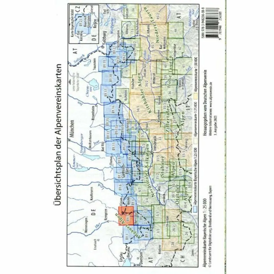 Topographische Karte Bayern 1:25.000, mehrfarbig, mit Wegmarkierungen, Skirouten, Schneeschuhrouten, Schutzgebiete, Bushaltestellen, Schummerung, Felszeichnung, Kennzeichnung der Klettersteige, UTM-Gitter.Gebiet: Östliche Allgäuer Voralpen mit Sonthofen, Grüntengebiet, Wertacher Hörnle, östliche Tannheimer Berge, Bad Hindelang.Karte in Kunststoffhülle (Polypropylen) eingesteckt.