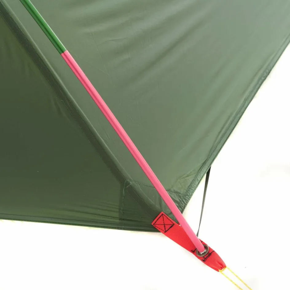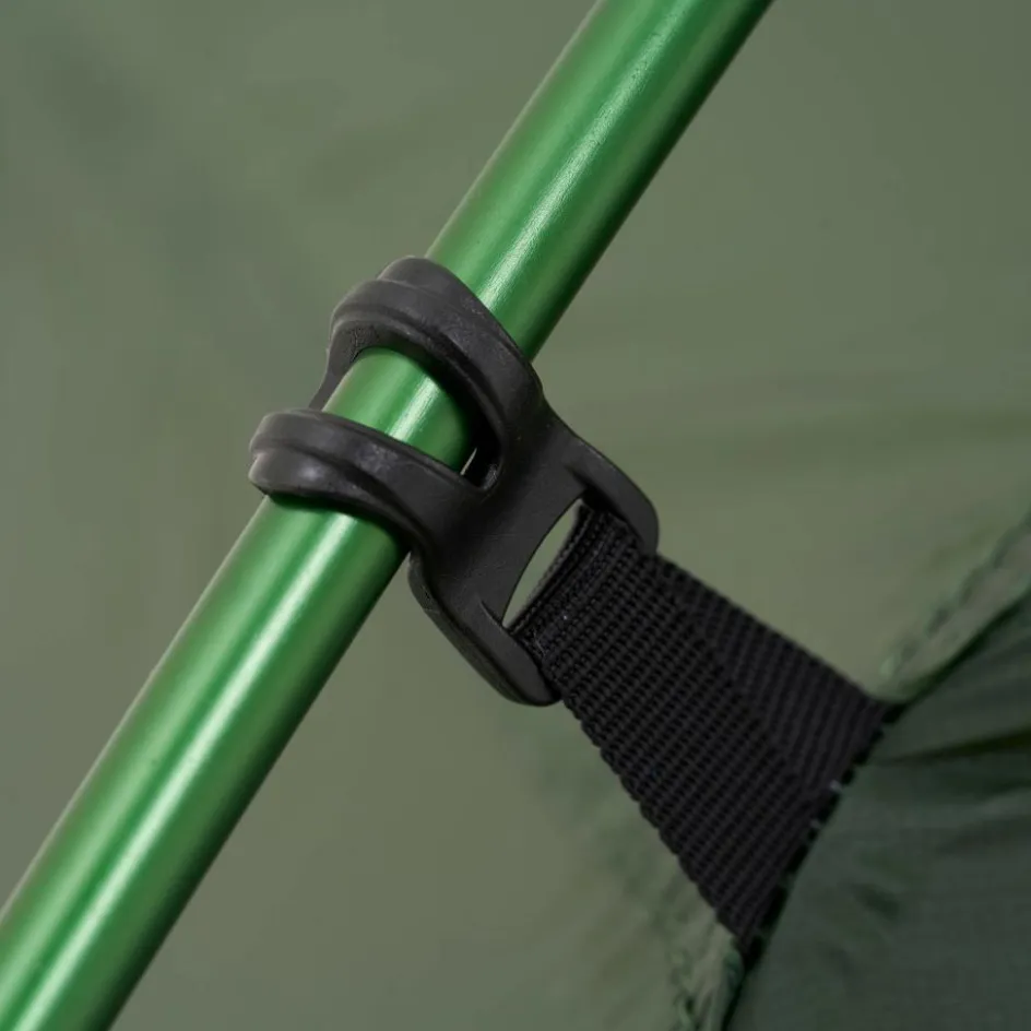 Dank des außenliegenden Gestänges lässt sich das Bella besonders schnell und einfach aufbauen. Dadurch wird das Außen- und Innezelt gleichzeitig aufgestellt – bei Schmuddelwetter ein echter Vorteil, denn so bleibt das Innenzelt trocken. Dazu ist das Gestänge besonders kompakt, um wie beim Bikepacking selbst in kleine Radtaschen zu passen.